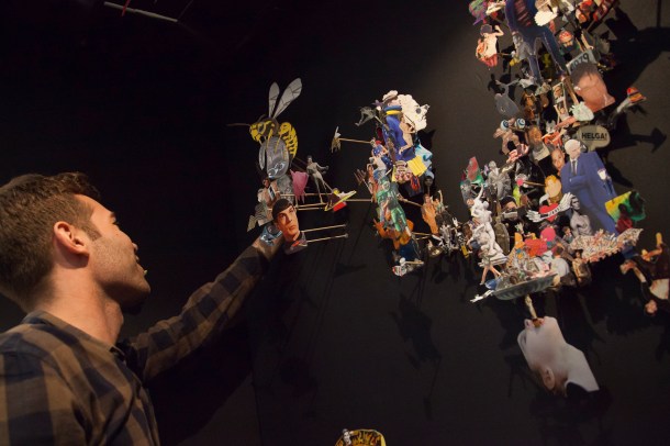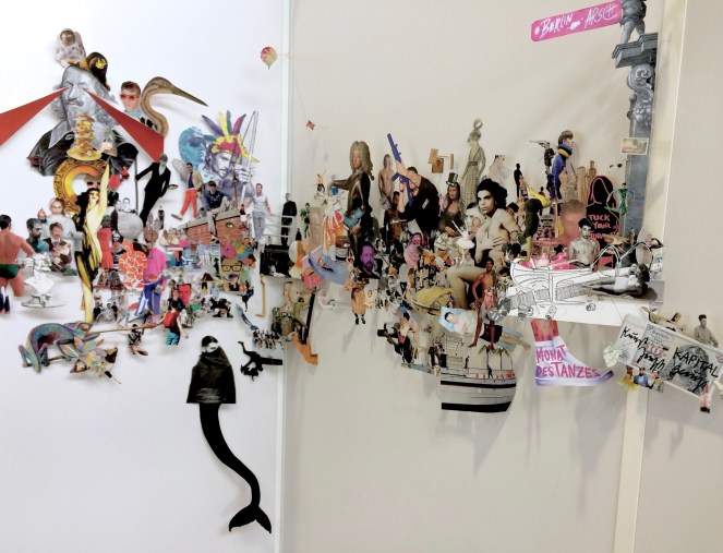 Nils Martin Müllers raumgreifende Wandinstallation, aus gefundenem Bildmaterial, entfaltet sich wie ein buntes, wucherndes Objekt, in dem sich immer mehr Details entdecken lassen. Während des Festivals verändert und erweitert der Berliner Künstler sein filigranes Papierwerk täglich und lädt die Besucher ein diese Transformation mitzuerleben.